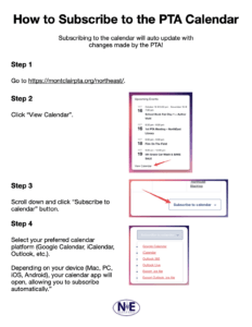 Subscribe to the NorthEast PTA calendar and never worry about manually entering PTA events again!